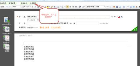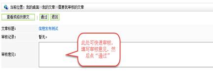 信息编辑完成后,点击“提交审核”后,向信息审核主管发送文章审核请求。确认无需主管审核的文章,可点击“发布文章”直接发布。