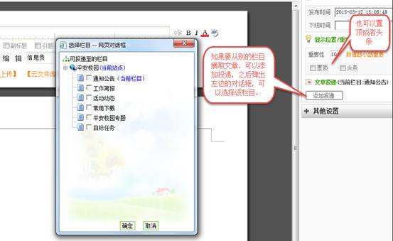 置顶、头条(根据需要选填):重要内容可以置顶显示